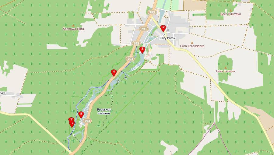 To jeden z najładniejszych fragmentów Jury Krakowsko-Częstochowskiej. Poznajemy go wędrując z centrum małomiasteczkowego Złotego Potoku w górę doliny Wiercicy. Celem jest słynna pstrągarnia, a po drodze wiele atrakcji - w tym zjawiska krasowe z jaskiniami, malownicze stawy i zabytki archeologiczne.