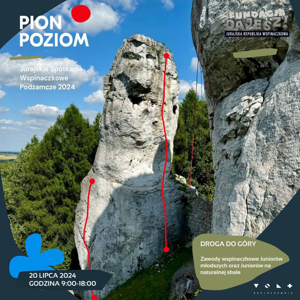Fundacja DAJESZ! zaprasza w weekend 19-21 lipca na PION/POZIOM, czyli 2. Jurajskie Spotkania Wspinaczkowe w Podzamczu. To druga edycja imprezy w Jurze Krakowsko-Częstochowskiej, która w formie zawodów i wydarzeń towarzyszących łączy środowisko wspinaczkowe i artystyczne, a także najważniejsza w Polsce debata o rozwoju wspinania i Jury z udziałem m.in. przedstawicieli rządu i samorządowców.
